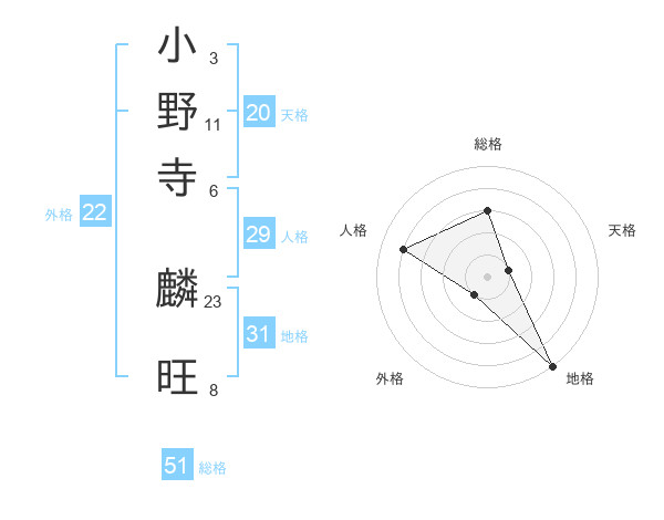 小野寺 麟旺さんを姓名の画数から五運を鑑定