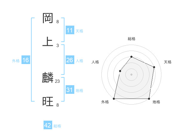 岡上 麟旺さんの総格は42画の3点!