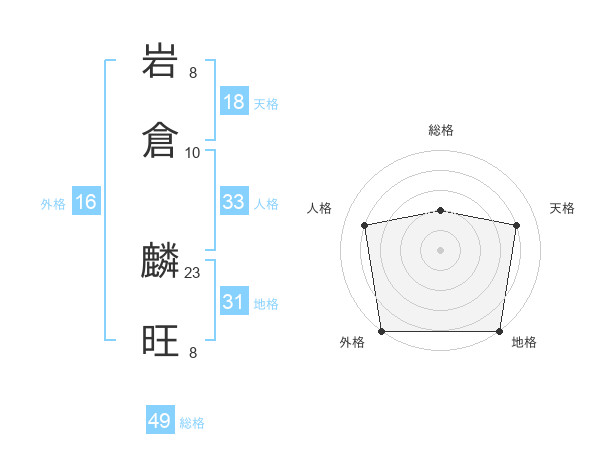 岩倉 麟旺さんの総格は49画の2点!