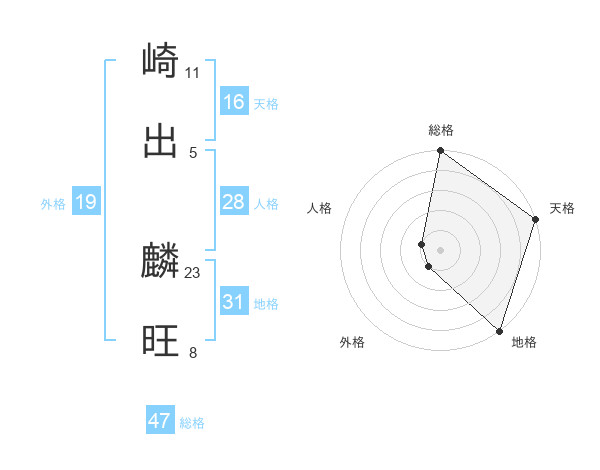 崎出 麟旺さんの総格は47画の5点!