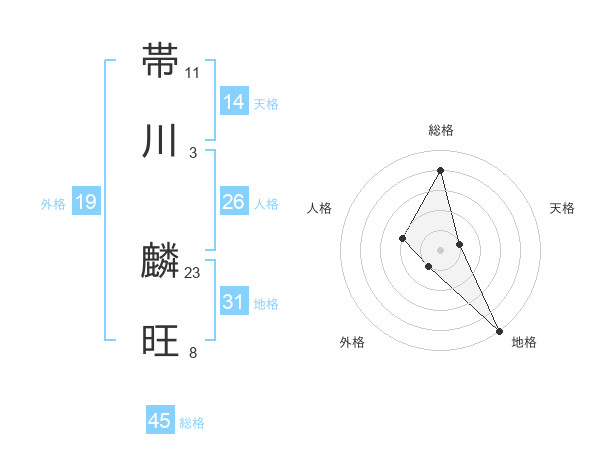 帯川 麟旺さんの総格は45画の4点!