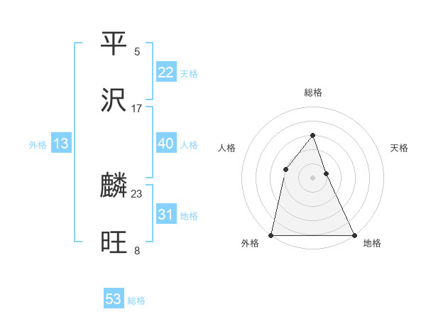 平沢 麟旺さんを姓名の画数から五運を鑑定