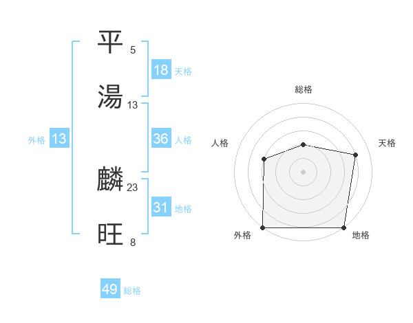 平湯 麟旺さんの総格は49画の2点!