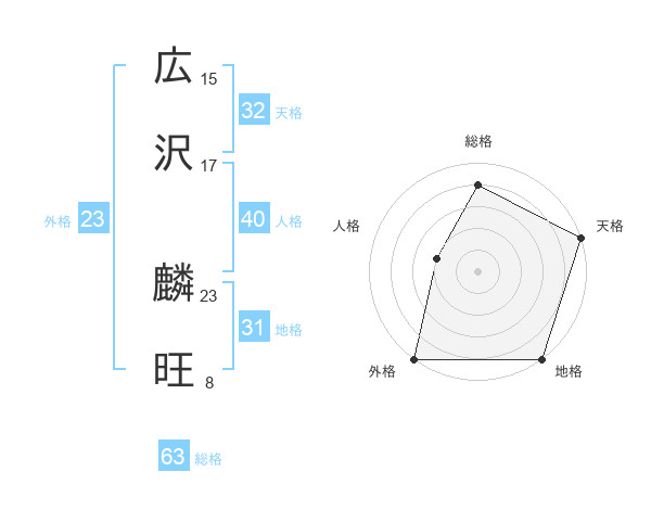広沢 麟旺さんの総格は63画の4点!