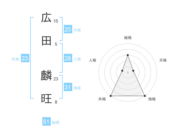 広田 麟旺さんを姓名の画数から五運を鑑定