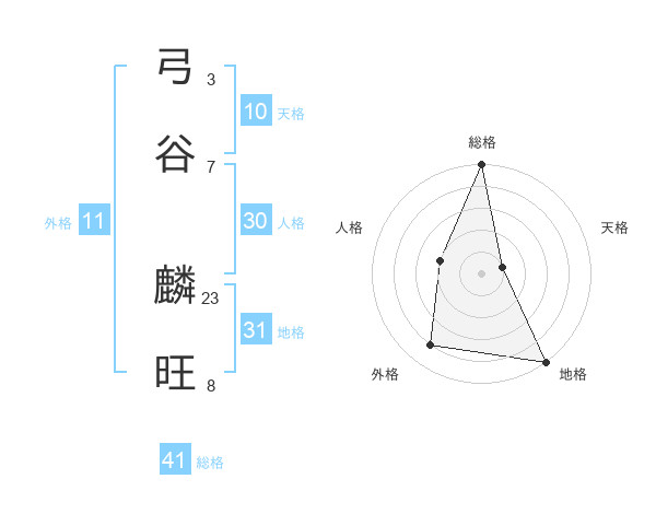 弓谷 麟旺さんを姓名の画数から五運を鑑定
