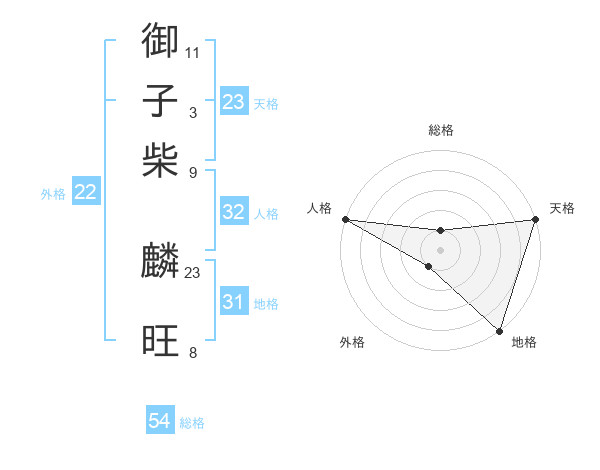 御子柴 麟旺さんの天格は23画の5点!