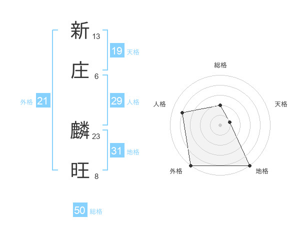 新庄 麟旺さんを姓名の画数から五運を鑑定