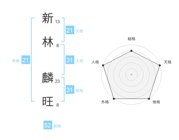 新林 麟旺さんを姓名の画数から五運を鑑定