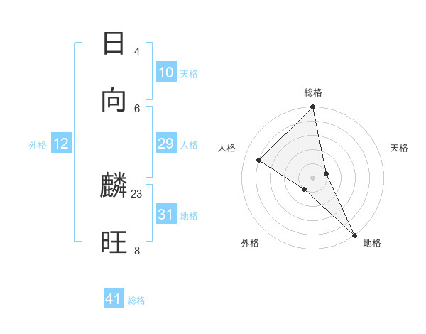 日向 麟旺さんの総格は41画の5点!
