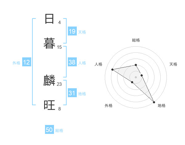 日暮 麟旺さんの総格は50画の2点!