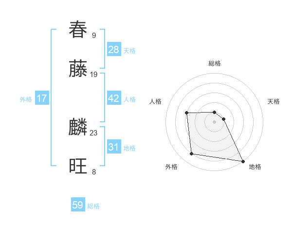 春藤 麟旺さんの総格は59画の1点!