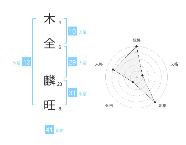 木全 麟旺さんの総格は41画の5点!