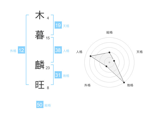 木暮 麟旺さんを姓名の画数から五運を鑑定
