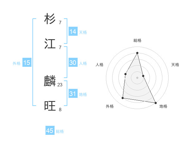 杉江 麟旺さんを姓名の画数から五運を鑑定