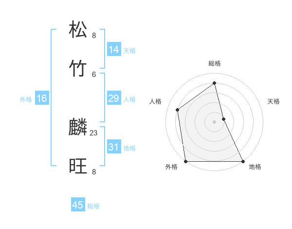 松竹 麟旺さんの総格は45画の4点!