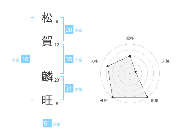松賀 麟旺さんの総格は51画の3点!