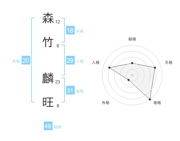 森竹 麟旺さんの総格は49画の2点!