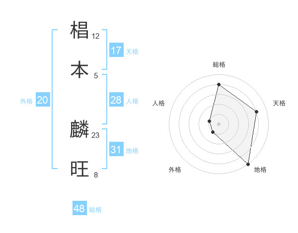 椙本 麟旺さんを姓名の画数から五運を鑑定