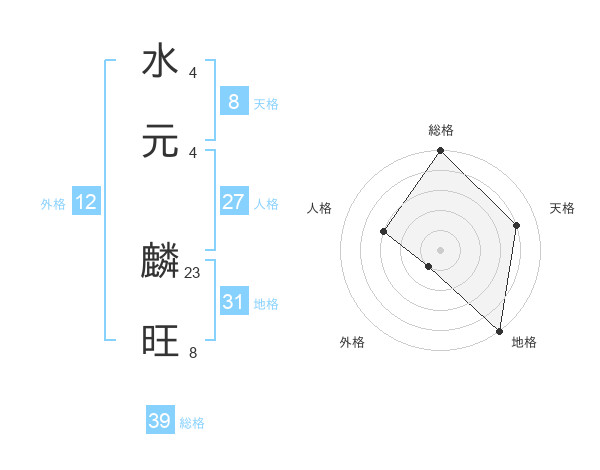 水元 麟旺さんを姓名の画数から五運を鑑定