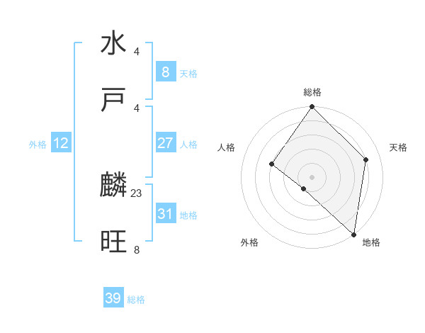 水戸 麟旺さんを姓名の画数から五運を鑑定