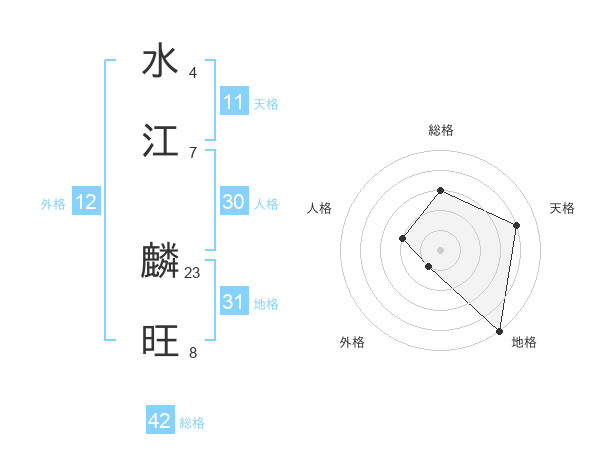 水江 麟旺さんを姓名の画数から五運を鑑定