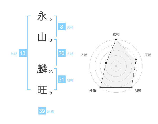 永山 麟旺さんを姓名の画数から五運を鑑定