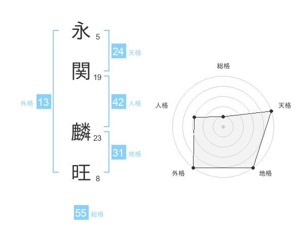 永関 麟旺さんを姓名の画数から五運を鑑定