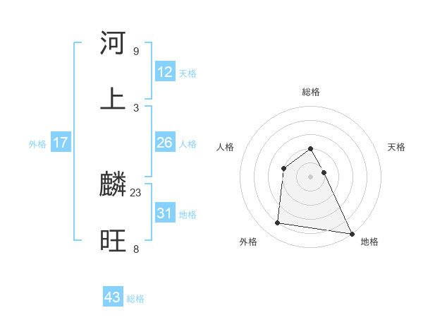 河上 麟旺さんの外格は17画の4点!
