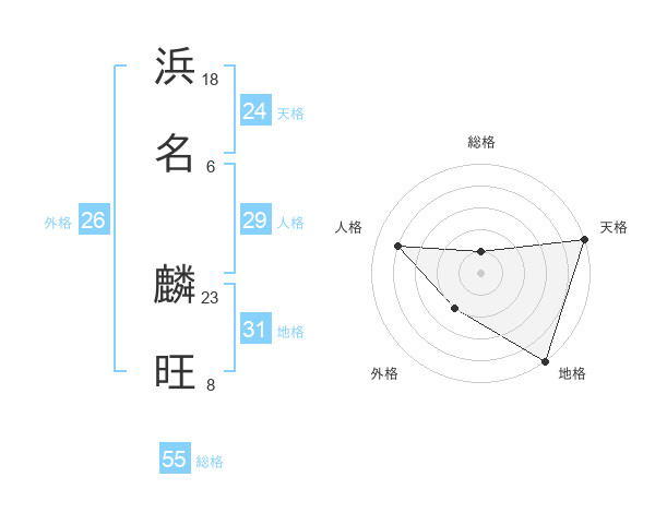 浜名 麟旺さんの天格は24画の5点!