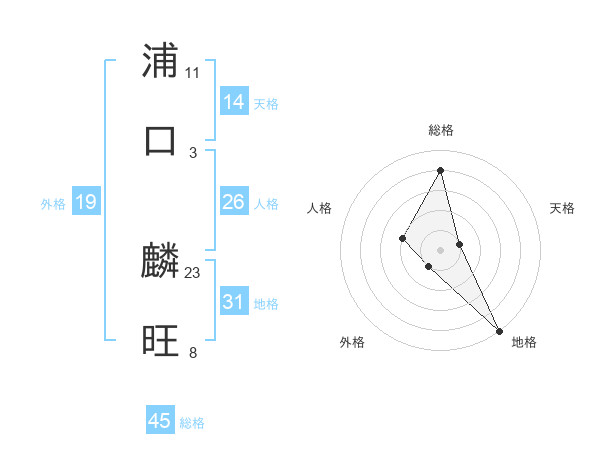 浦口 麟旺さんの総格は45画の4点!