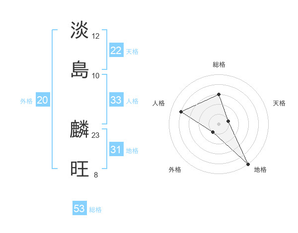 淡島 麟旺さんを姓名の画数から五運を鑑定
