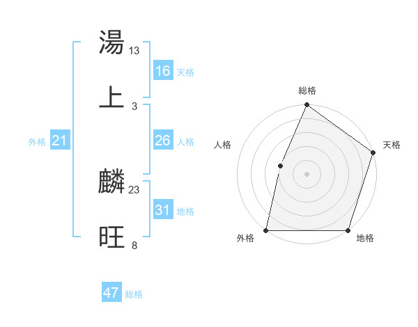 湯上 麟旺さんの総格は47画の5点!