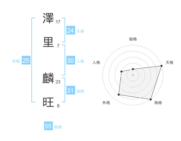 澤里 麟旺さんを姓名の画数から五運を鑑定