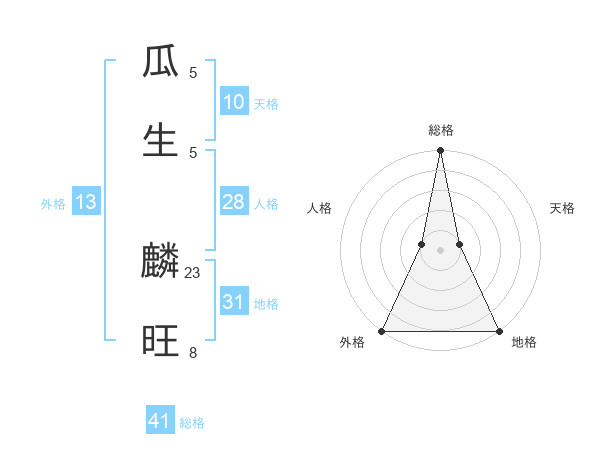 瓜生 麟旺さんの総格は41画の5点!