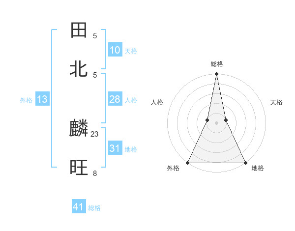 田北 麟旺さんの総格は41画の5点!