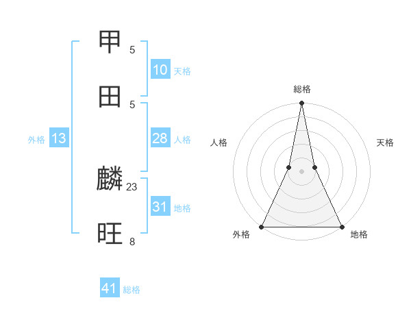 甲田 麟旺さんの総格は41画の5点!