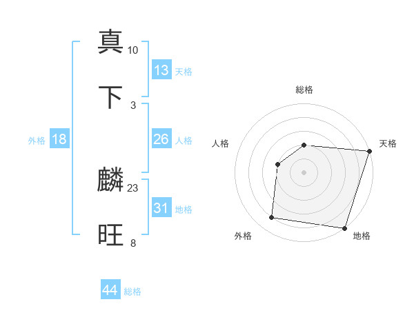 真下 麟旺さんを姓名の画数から五運を鑑定