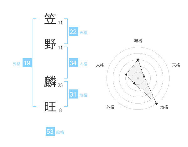 笠野 麟旺さんを姓名の画数から五運を鑑定