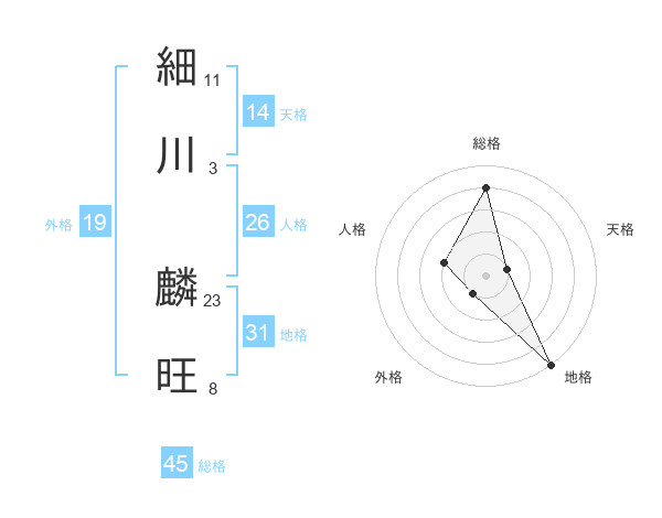 細川 麟旺さんを姓名の画数から五運を鑑定