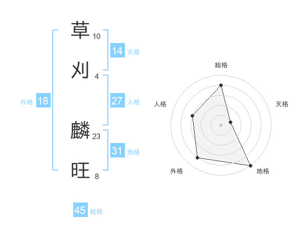 草刈 麟旺さんを姓名の画数から五運を鑑定