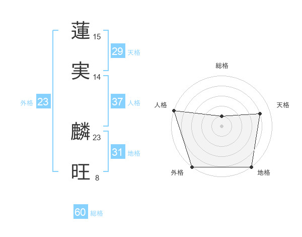 蓮実 麟旺さんを姓名の画数から五運を鑑定