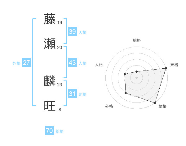 藤瀬 麟旺さんの総格は70画の1点!