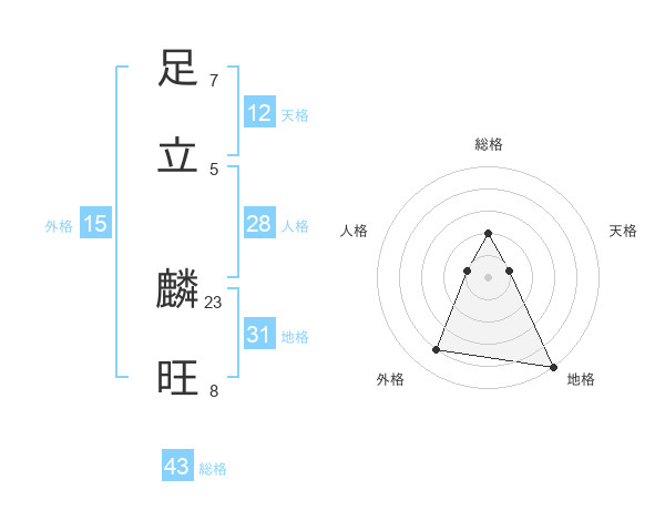 足立 麟旺さんを姓名の画数から五運を鑑定