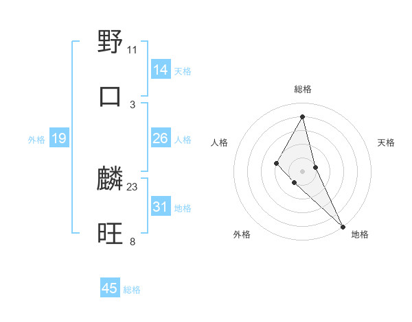 野口 麟旺さんの総格は45画の4点