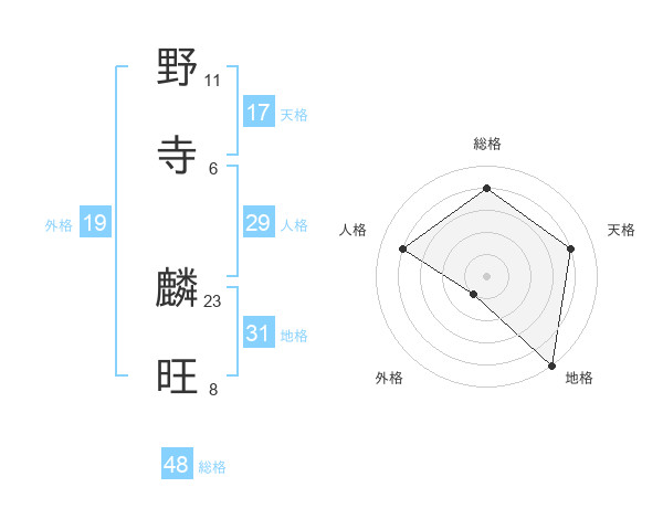 野寺 麟旺さんの総格は48画の4点!