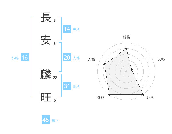 長安 麟旺さんを姓名の画数から五運を鑑定