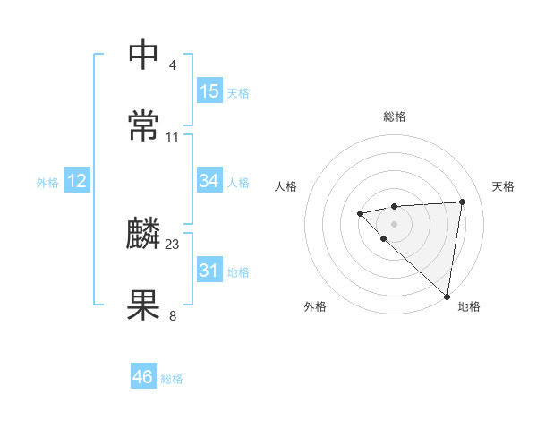 中常 麟果さんの天格は15画の4点!