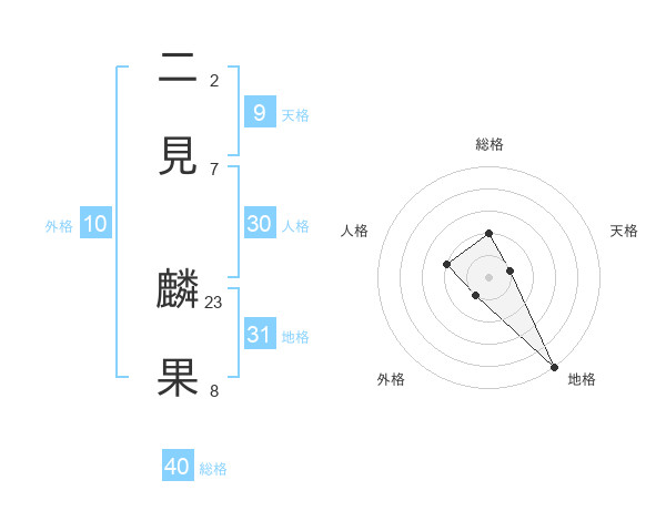 二見 麟果さんの総格は40画の2点!