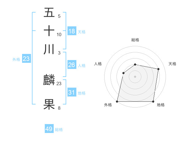 五十川 麟果さんを姓名の画数から五運を鑑定